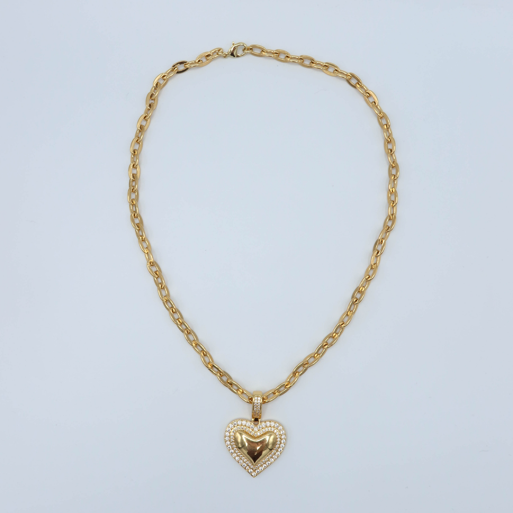 Pave-outlined Gold Heart Pendant on Gold Chain