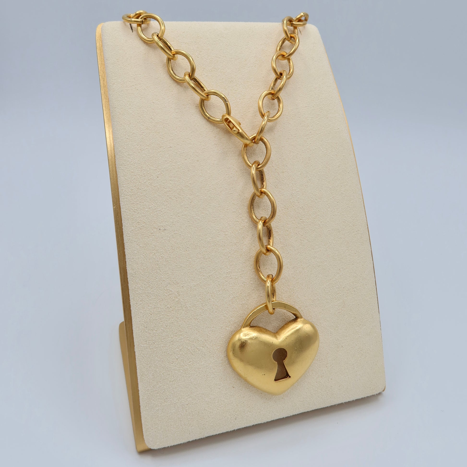 Heart Locket Pendant on Gold Lariat Chain