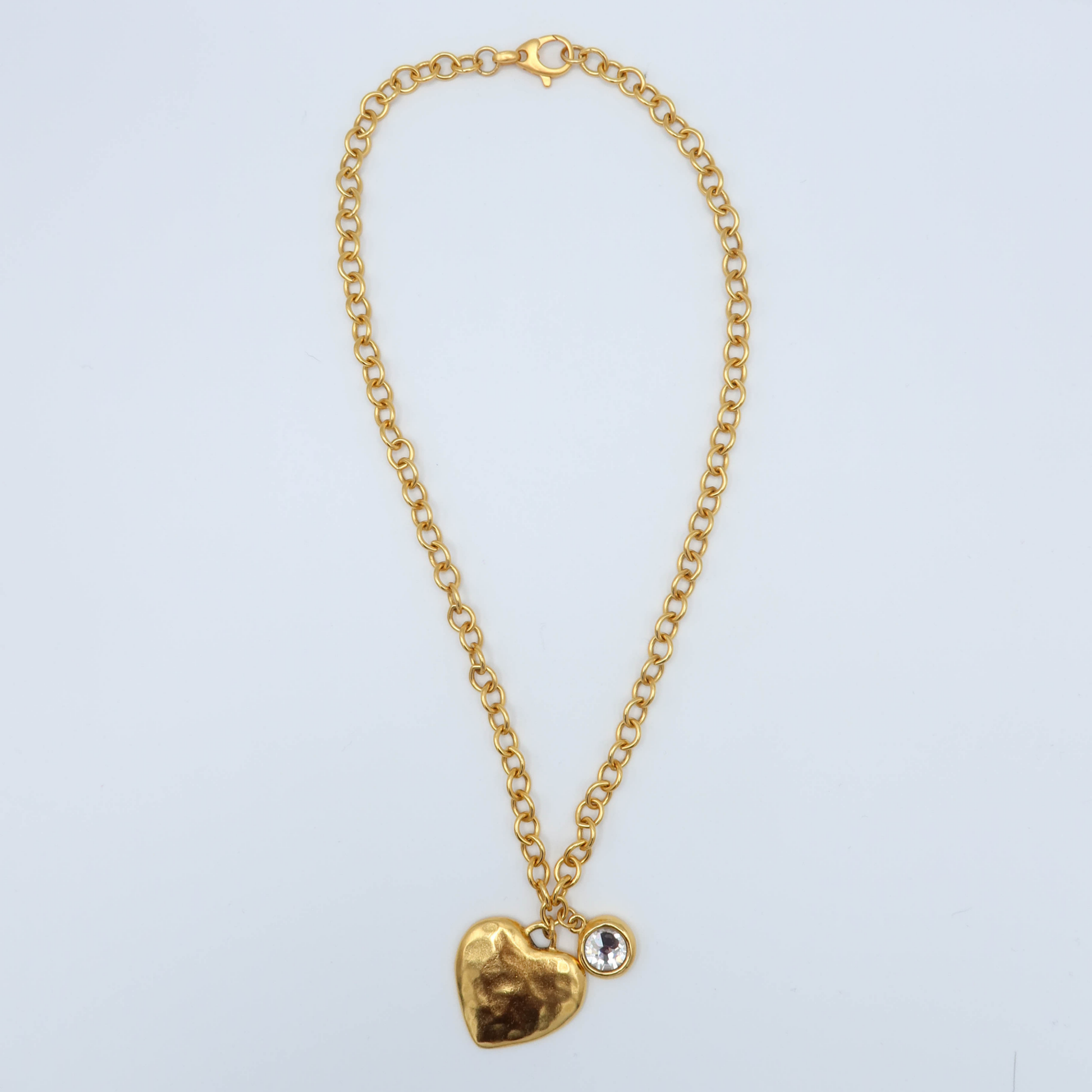 Medium Heart Pendant and Crystal Rhinestone Charm on a Small Chain